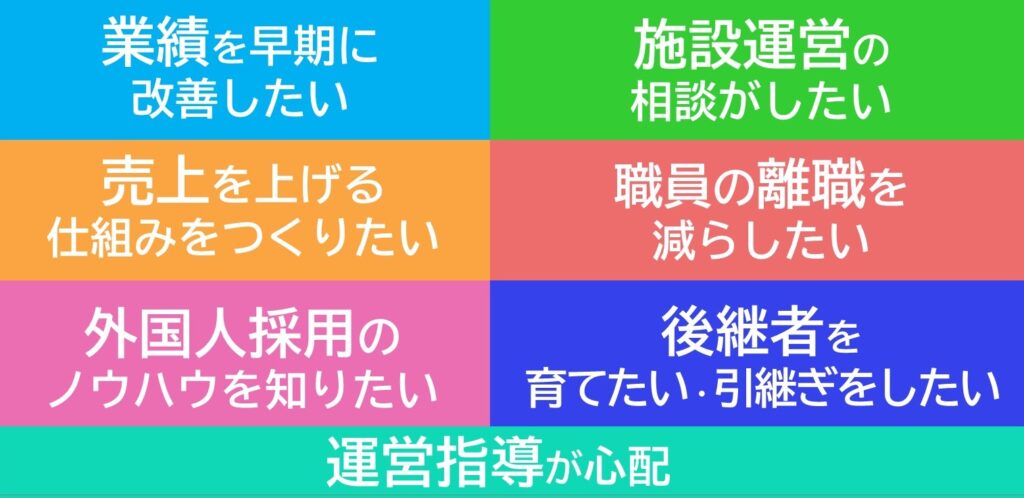貴施設のスタッフ面接、及び関連する事柄をそこで全てリストアップし、隠れている問題点や要素を明確にして可視化します。